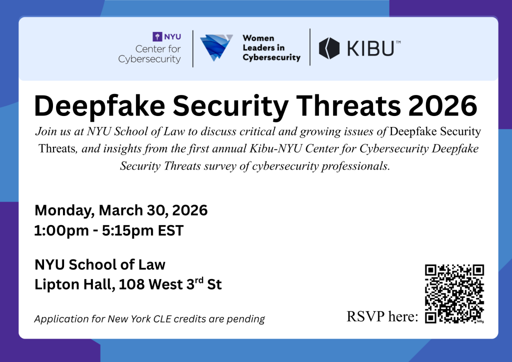 Join us at NYU School of Law to discuss critical and growing issues of Deepfake Security Threats, and insights from the first annual Kibu–NYU Center for Cybersecurity Deepfake Security Threats survey of cybersecurity professionals.